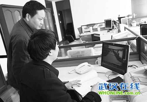图为领导查看视频监控系统。