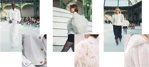在香奈儿的2020/21秋冬高级成衣系列中,黑白造型是主色调,简洁与克制的风格随处都彰显着天马行空的想象力。尤其是白色的衣物,有昂贵的面料和精巧细密的手工加持,竟如奶油般柔和、珍珠般闪耀。