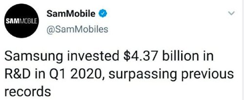 三星Galaxy Z Fold2 5G大放异彩的背后是三星强大的科研实力和积极创新的态度,作为行业领导者,三星每年在研发方面投入了成千上万的资金和精力。仅在2020年第一季度,三星的研发投入就超过了43.7亿美元,约合人民币308亿元。这个数字也是打破了三星以往单季度的研发投入记录。三星疯狂投入的背后是对于自身技术的更新升级以及对于未来电子行业飞速进步的一种预测。先囤足粮食再打仗,三星深知核心技术的重要性。