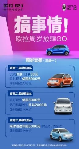 此外,在欧拉诞生一周年之际,以不走寻常路而挑战行业底线的欧拉再次礼遇用户推出三重豪礼,为年轻一族的舒适出行加油助力。如果你已经心动,那就快去各大门店咨询吧,好礼多多,让你拿到手软!