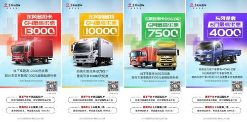 6月购买东风轻卡,不仅全系可享现金优惠,部分车型还有金融贴息补贴。以全能物流开创者东风多利卡为例,线下购买除了12000元的购车优惠,部分车型还可享最高1000元的金融贴息补贴,合计优惠可高达13000元,省下来的钱,别说一次618,再来一个双十一,也统统不在话下;当然,智慧物流领航者东风凯普特也不甘示弱,热销尼桑动力车型最高可享10000元优惠,放眼整个618大促市场,依旧能打;而吨位王东风多利卡D9&D12,不仅能装能拉,还可享最高优惠7500元;作为今年的热销车型和地摊经济主力军,新生代货运领跑者东风途逸和创业致富助力者东风小霸王则最高优惠4000元。