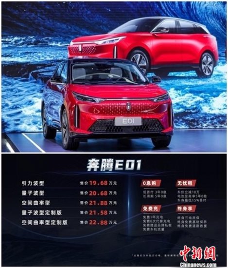纯电动新车奔腾E01正式上市补贴后售价19.68-22.88万元