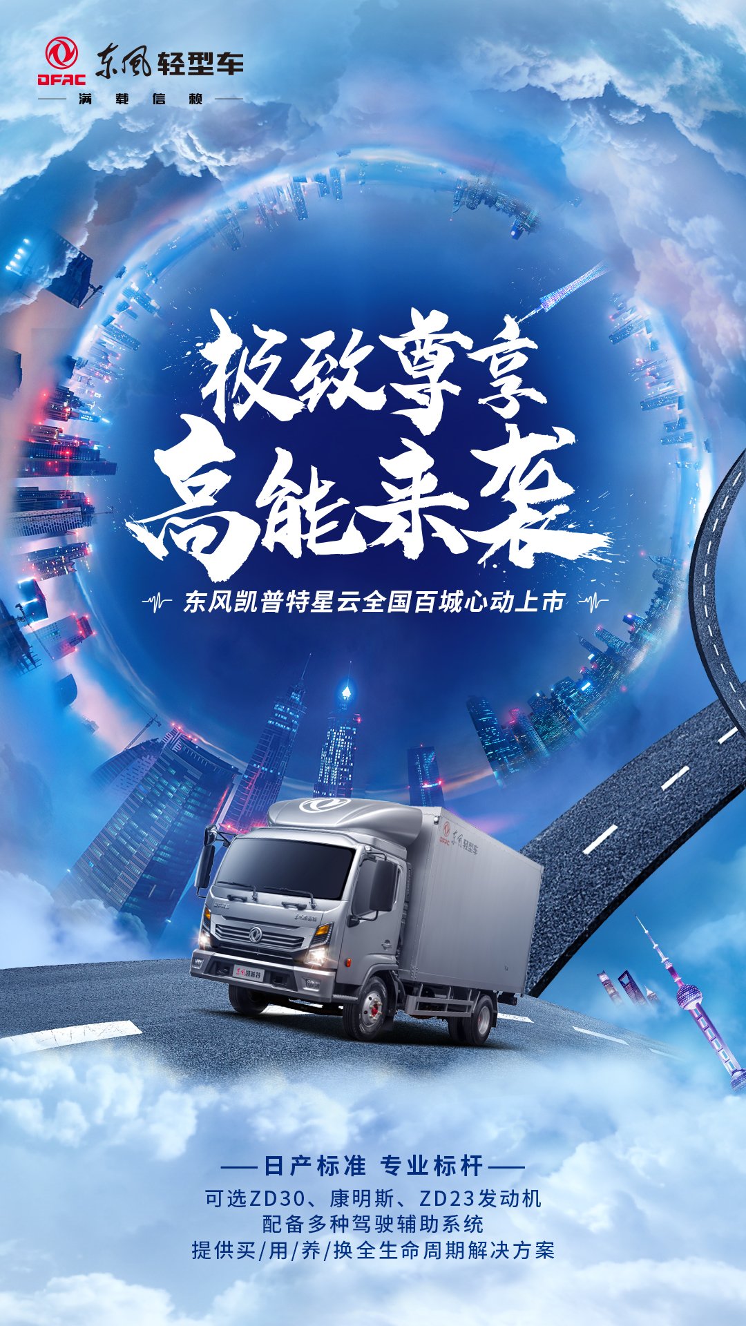 瞄准高端轻卡赛道,2020年,东风轻型车携全新一代凯普特星云跑步进场,于持续变化的业态中主动求索。2021年,“亮剑”后的东风轻型车高举进攻大旗,在全国百城上市凯普特星云。统一标准、统一形象出现的星云很快就俘获了大量卡友。