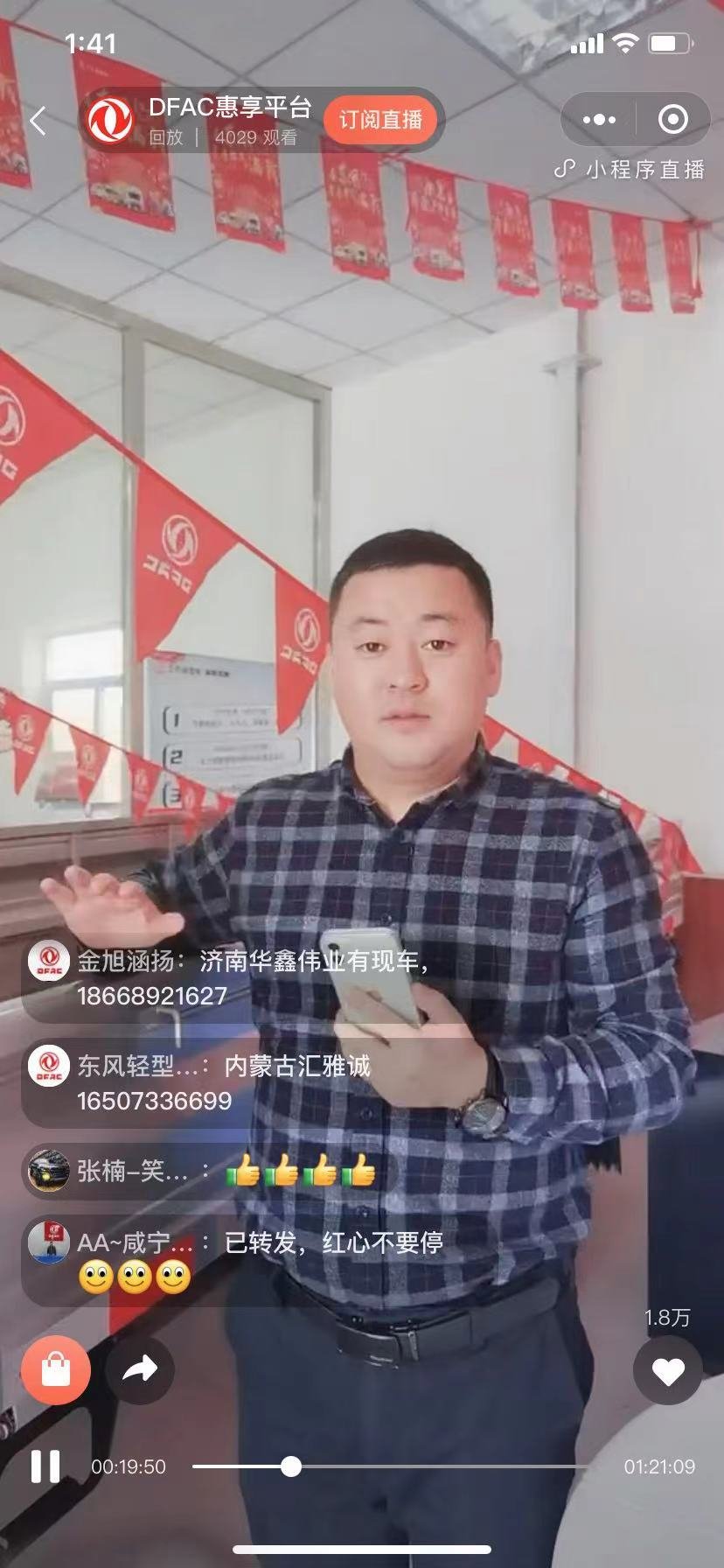 截至2021年一季度,东风轻型车旗下经销商注册账号超180个,开展直播数十场,发布了近2000条短视频,吸引用户点赞超十万,直播最高订单额超126万。“卡车毕竟是大宗销售,虽然现在转化率不高,但这种模式可以让客户快速了解车型和相关政策,也能让经销商准确识别潜在客户。”东风轻型车沈阳经销商王先生表示。