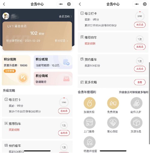 会员更多元。根据不同类型会员,东风兄弟俱乐部设置了各类福利,会员等级越高,福利越多。积分累计达 2000 分后,普通会员可升级为黄金会员;积分达20000分后,将自动升级为铂金会员;累计积分达30000分,则可升级为钻石会员。需要注意的是,目前,会员积分实行年度清零制度,但会员等级及对应优惠永久有效。
