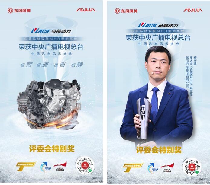 4月26日,在中央广播电视总台主办的中国汽车风云盛典颁奖会上,由东风公司自主研发的马赫双擎MHD混动系统,继东风马赫动力1.5T发动机2021年斩获中国汽车风云盛典评委会年度特别奖之后,也荣获了今年的评委会特别奖,代表东风马赫动力品牌再度叱咤中国汽车风云。