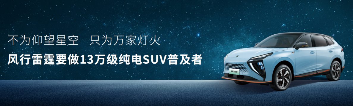 不为仰望星空,只为万家灯火。当超高的颜值、超强的配置、超稳定的续航里程,遇上超低的价格诱惑,“13万级纯电SUV普及者”这把座椅,风行雷霆坐稳了。