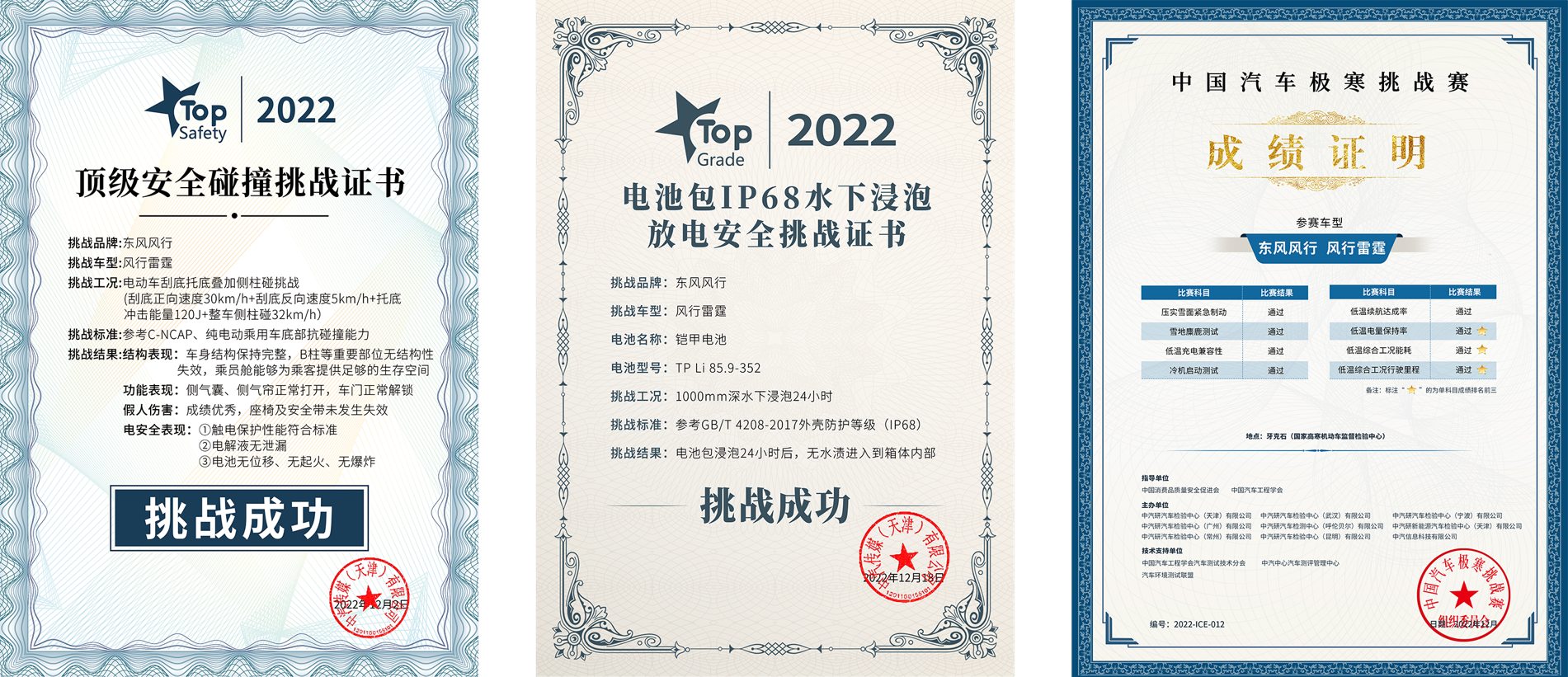 风行雷霆的铠甲电池经过了多次的严苛测试。在测试中,铠甲电池不仅要经受极寒、浸泡等极端环境的考验,还需要经过刮底、托底、侧柱碰撞等各种复杂的模拟测试。这些测试都能够展现电池的稳定性和安全性能,有效地避免了电池自燃等问题。