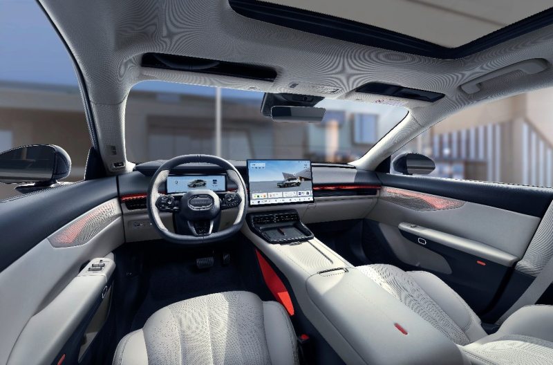 座舱宽敞舒适,给每一位乘客带来舒适轻松的轻盈与惬意感。车门设计上,所有体积和线条元素均远离驾乘者布置,营造出开阔的空间感,并通过流畅的曲线与仪表板无缝衔接。翼形凹面仪表板同样整体向外推移,增加了车内的前向空间。车门扶手则采用悬浮式设计,并增加了储物格,方便放置物品,美观的同时也更为实用。
