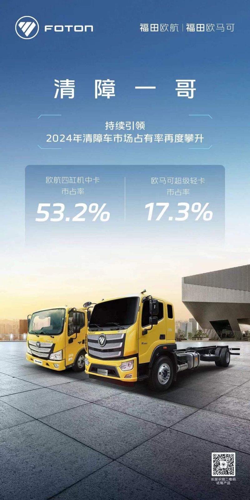 随着技术进步、市场需求变化、环保和节能要求的提高以及政策的支持和引导,专用车行业正在迎来新的发展机遇。欧航欧马可作为福田汽车高端中轻卡业务单元,紧抓发展机遇,以持续的科技创新及先行科技应用创新,推出涵盖清障、冷链、环卫等多个行业的专用车产品,并取得卓越成果。2024年一季度,欧航欧马可专用车业务市场占有率持续增长,以行业领导者姿态持续引领专用车发展潮流。