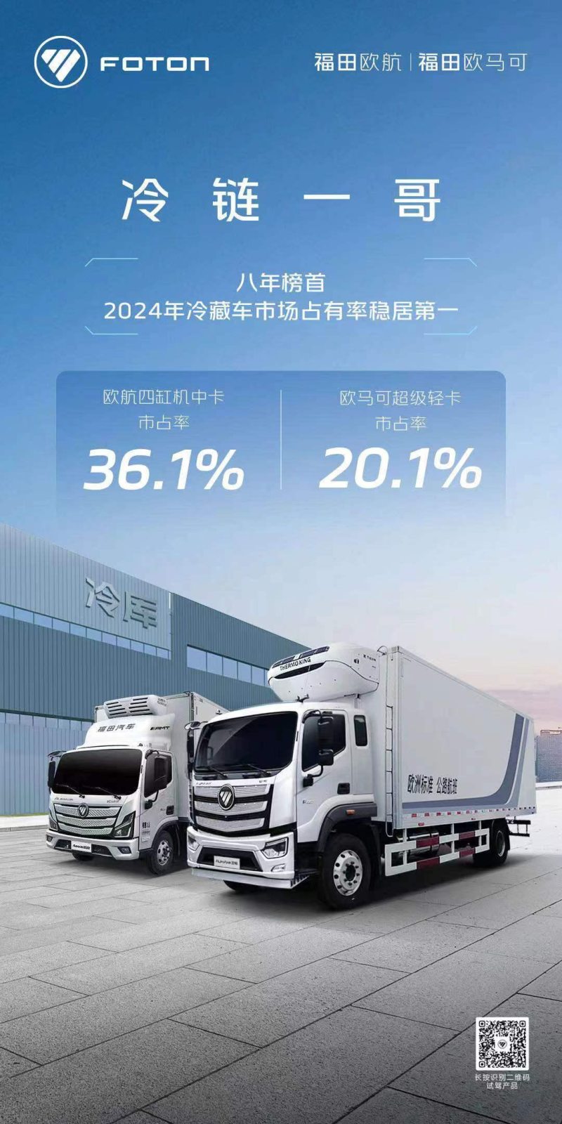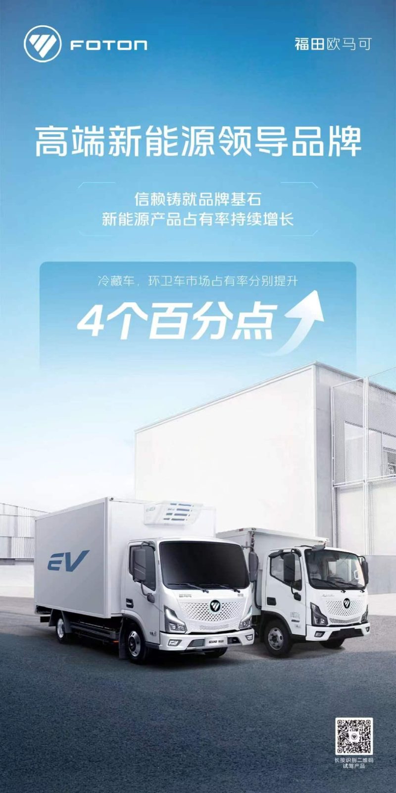 在技术、市场导向、政策的共同驱动下,专用车行业正朝着智能化和绿色化方向发展。欧航欧马可承袭福田汽车新能源技术积淀,基于纯电、混动、氢燃料技术路线,推出覆盖清障、冷藏、环卫核心作业场景的全系列新能源产品组合,引领专用车绿色化升级潮流。今年一季度,欧马可智蓝冷藏车产品、环卫车产品市场更是实现占有率均提升4个百分点,加速专用车绿色化发展。
