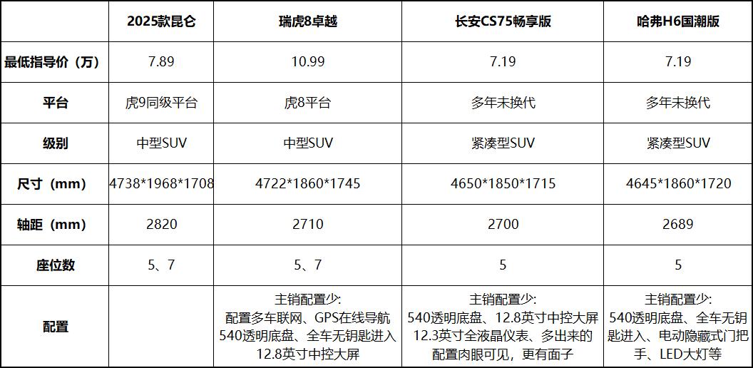 “以新打旧”“以大打小”,2025款昆仑能否成为“自主四杰”?