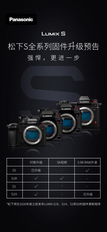 松下将在2020年底之前发布LUMIX S1R,S1H,S1和S5的固件更新程序: