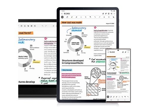 为了帮助用户更好的进行创作,三星还为三星笔记APP加入了全新的功能。现在,用户可以直接在三星笔记中对PDF文件进行审阅批注,使用S Pen不管是进行高亮显示或是直接手写批注,都能给人更加直观的反馈意见。同时,三星笔记的声音书签功能还照顾到了经常需要做会议纪要的朋友,方便他们能在短时间内将会议录音与会议笔记进行整合。而全新的文件管理系统,帮助用户能更加合理的管理自己的笔记,不管是查找或是移动,都能轻松完成。最重要的是,三星笔记支持通过三星云账户将笔记内容同步到手机、笔记本等其他三星Galaxy设备上,方便用户根据自己的需求进行整理。