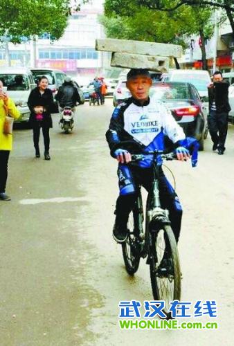 武汉江夏大爷每天头顶68斤石磨盘骑车10公里锻炼