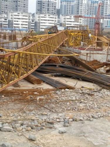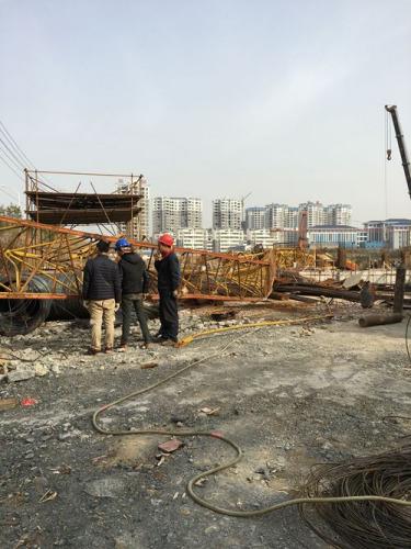 咸宁市城区银桂路一工地塔吊垮塌 司机从28米高坠下