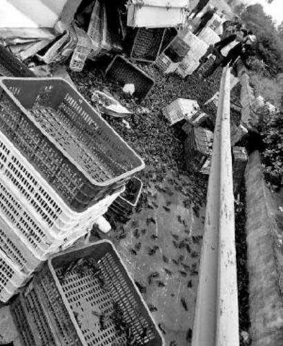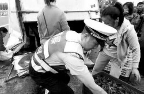 仙桃高速公路上翻车小龙虾遭哄抢 民警帮忙捡虾手被夹肿