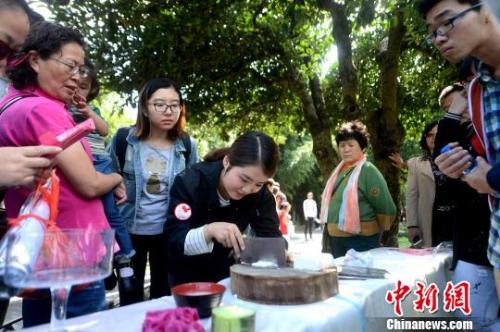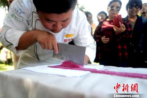 图为淮扬菜厨师表演刀切文思豆腐。 孟德龙 摄