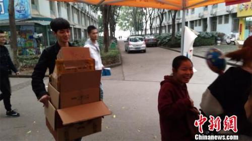 武汉华夏理工学院学生回收快递盒“变废为宝”