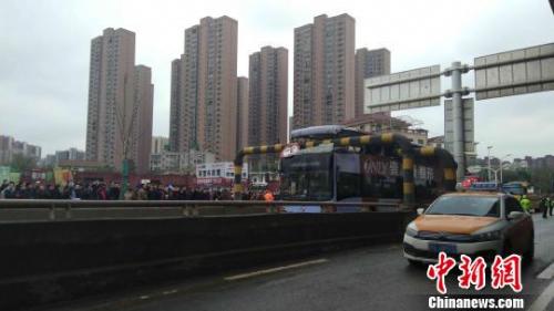 洪山一辆593路双层公交撞上限高架 致1人死亡多人受伤