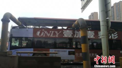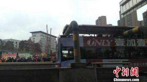 27日14时许,武汉市洪山区白沙洲大道白沙三路口附近一辆双层593路公交车撞上3米限高架,车内1名乘客经抢救无效不幸去世,另有多名乘客受伤。