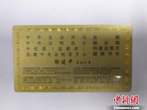 另外,为了进一步包装自己,徐某还特地定制了一些自己的名片,并给自己冠上了“中华法治网总裁”“中华法制报社副总编”“中纪委(监察委)特邀监察员”等头衔。