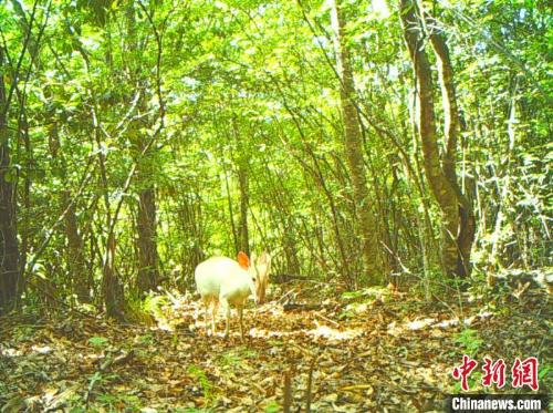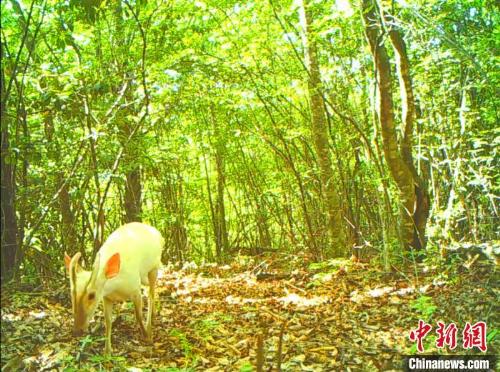罕见白化小麂现身神农架。神农架国家公园管理局供图