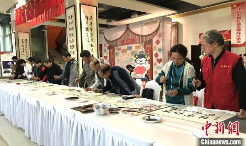 启动仪式现场,12名书画志愿者代表挥毫泼墨绘出10米“小康长卷” 张芹 摄