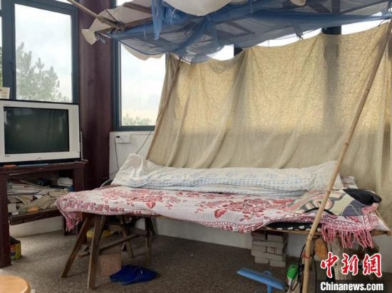 图为瞭望塔2楼的简易床铺 武一力 摄