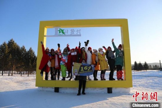 游客在“神州北极”合影庆祝新年到来。 王景阳 摄