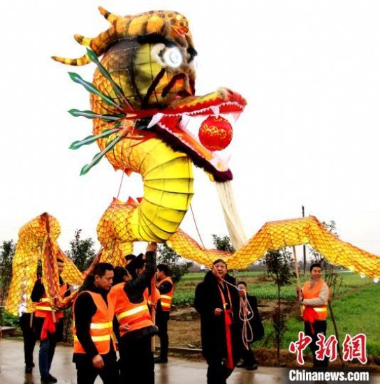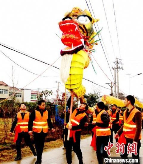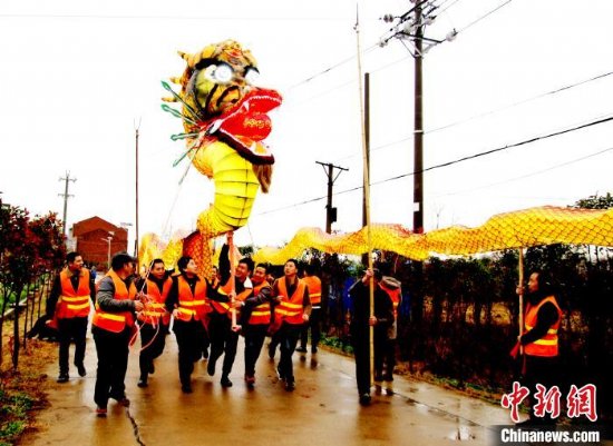 孝昌县花园镇村民舞动百余米“火龙”迎新年