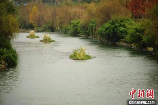 邓立聪介绍,人工漂浮湿地是基于生态系统原理,通过模块化漂浮湿地,构建模拟人工湿地系统。其水上种植层能够形成良好的植物组团效果,能够为鱼类,鸟类,青蛙等动物提供栖息的家园,有效恢复城市的生物多样性。