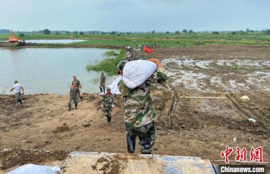 当地村民和民兵近千人组成抢险突击队加筑子堤 周星亮 摄