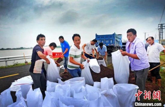 南京及时储备防汛物资,送上江堤和河岸危险地段。 宁轩 摄