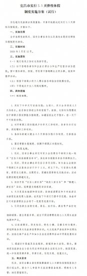 宜昌决定实行2.5天弹性休假制度