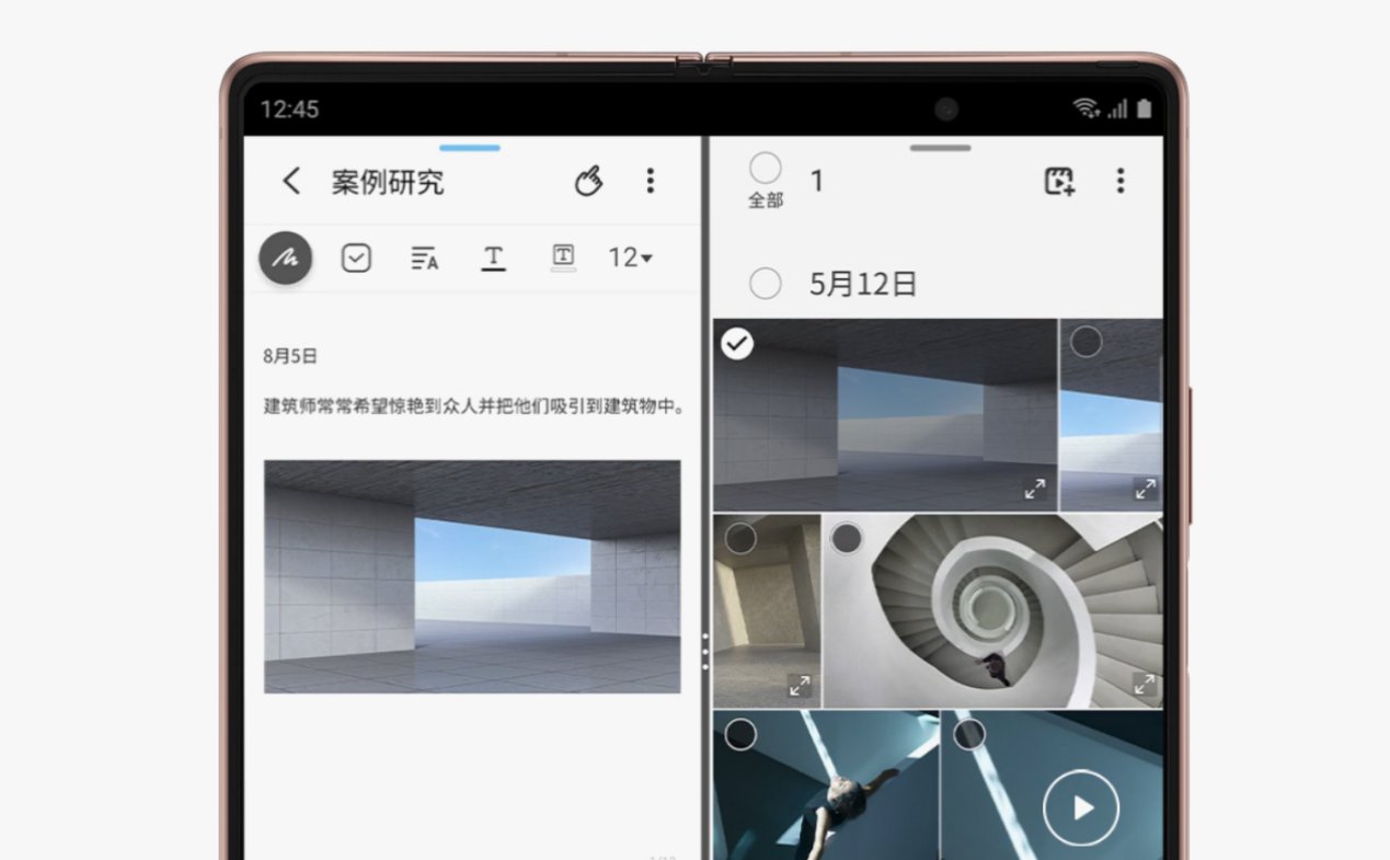除了硬件提升,三星Galaxy Z Fold2 5G还在软件层面针对折叠屏进行了深度优化。只有在软件部分进行适配优化,才能更好发挥折叠屏的优势。