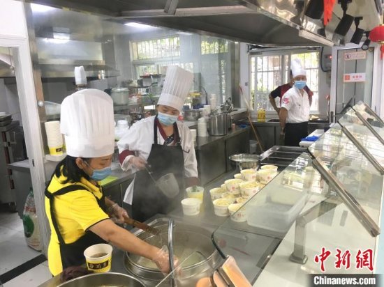 在东亭社区智慧颐养中心,厨师们正在准备热干面。 中新社 万淑艳 摄 万淑艳 摄