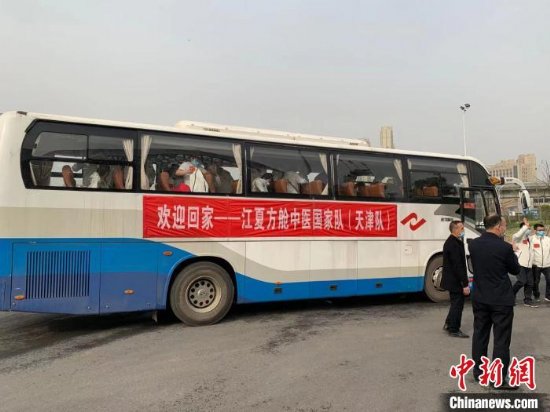 图为医护人员乘坐大巴车重返江夏方舱 武一力 摄