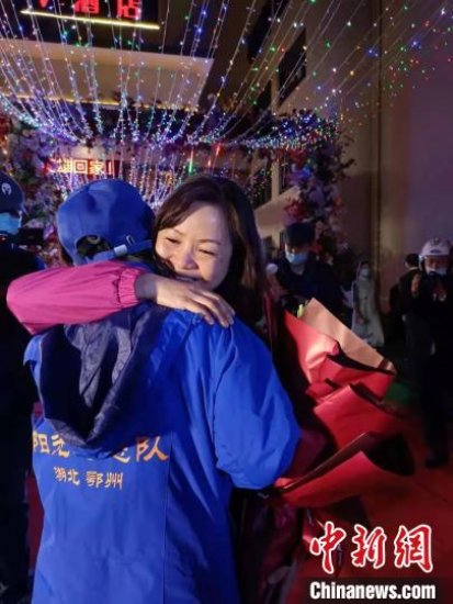鄂州市民与贵州医护人员拥抱。 石小杰 摄