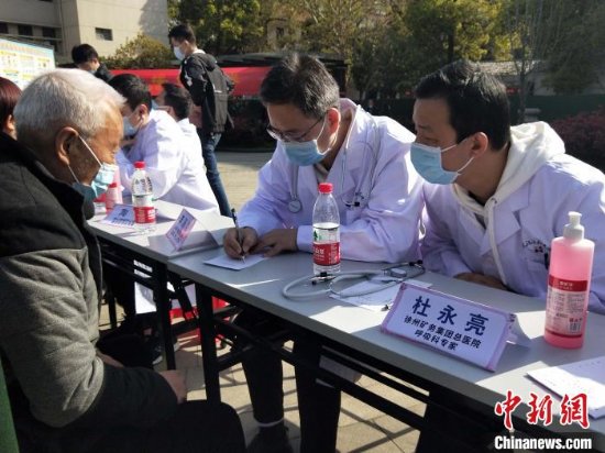 图为,抗疫医疗队员为武汉居民进行义诊 孙丽 摄
