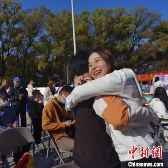 图为,时隔一年医护人员与患者激动相拥 孙丽 摄