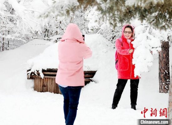 游客和雪景合影。 王景阳 摄