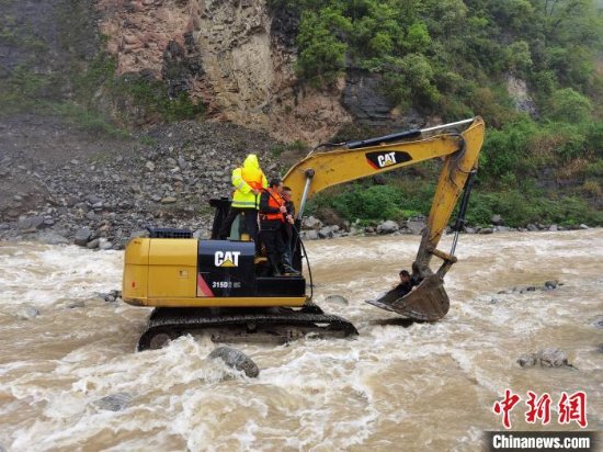 秭归县一男子驾驶车辆时被困河中 民警坐挖机施救