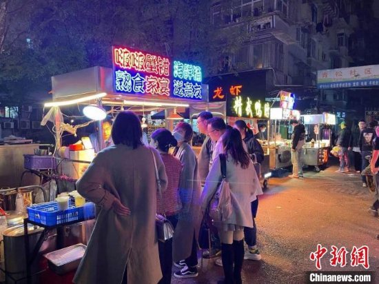 4月6日晚,武汉万松园美食街人气渐旺 武一力 摄