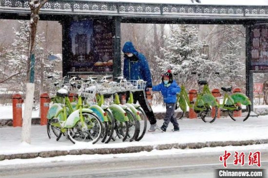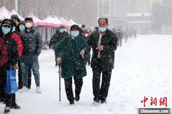 家长领着小朋友冒雪前行 赵宝林 摄