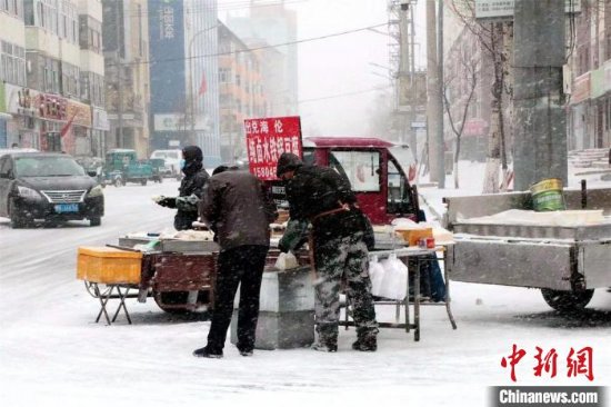 在雪中坚持营业的商贩 赵宝林 摄