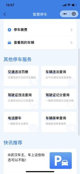 此外,“武汉战疫”小程序还上线了停车缴费、附近停车场、查看热点区域人流量等多种功能,助力出行游客快速找到附近可停车位置,提前避免遇到人流集中等状况,享受出行快乐。