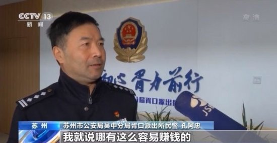 苏州市公安局吴中分局胥口派出所民警 孔阿忠:她问我她在一个投资平台投了300多块钱,过了两三天时间呢就赚了1000多块了。当时提现的时候平台要求她提供身份证银行卡,她之前也接受过我们的反诈宣传,她觉得这个事情不太靠谱,所以她来问我。