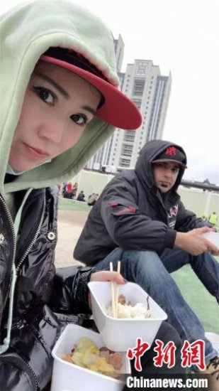 丹尼斯和朋友在雷神山医院当志愿者期间用餐(资料图)受访者供图