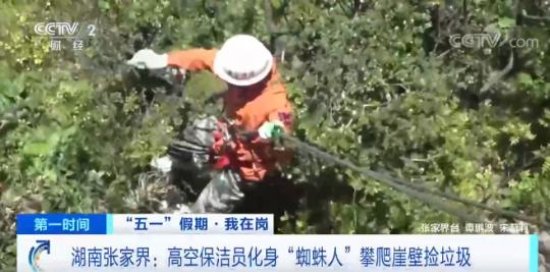 在湖南张家界天门山国家森林公园,高空保洁员每天都要化身“蜘蛛人”飞檐走壁,在千米悬崖绝壁边捡拾垃圾。